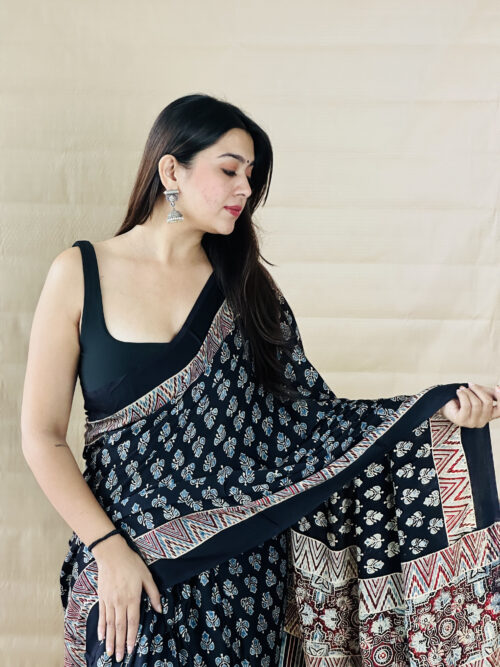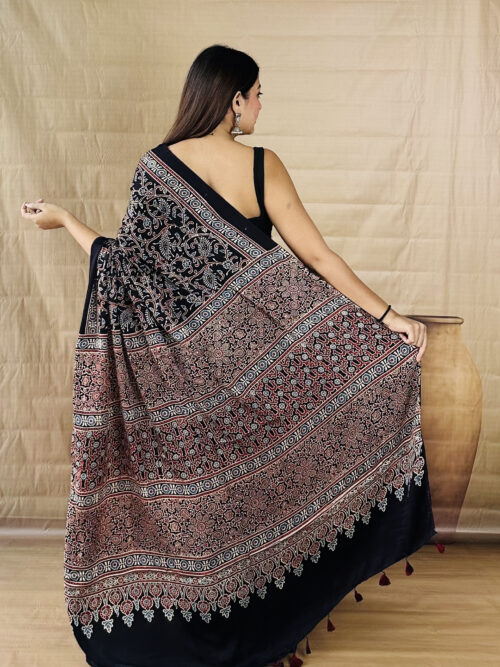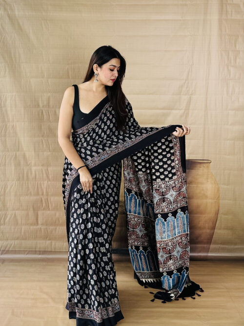 “Black Color Floral Print Ajrakh Modal Silk Saree” has been added to your cart. View cart