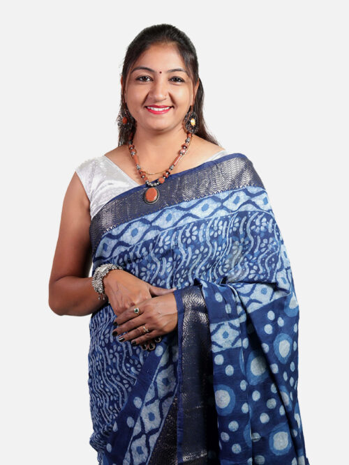 “Tarapur Nandana Mango Tree Small Border Saree – Indigo” has been added to your cart. View cart