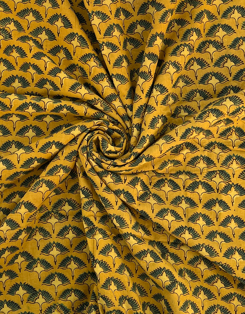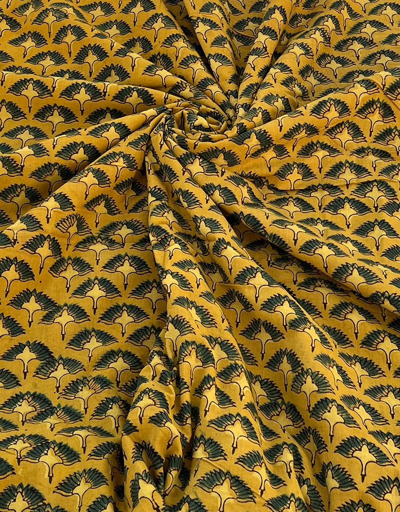 Ajrakh Hand Block Floral Print Cotton Fabric – Yellow