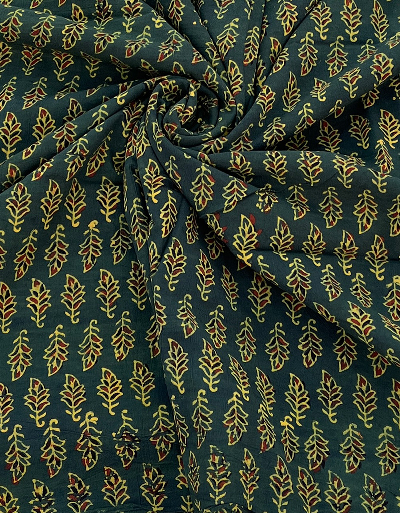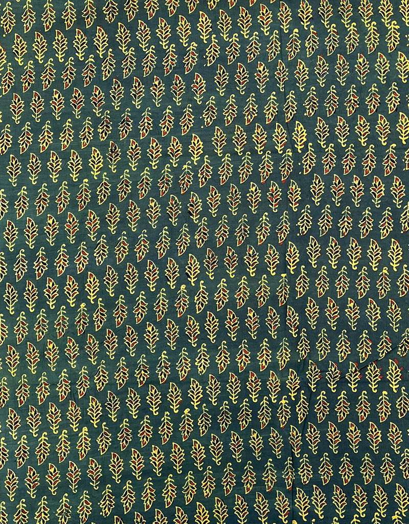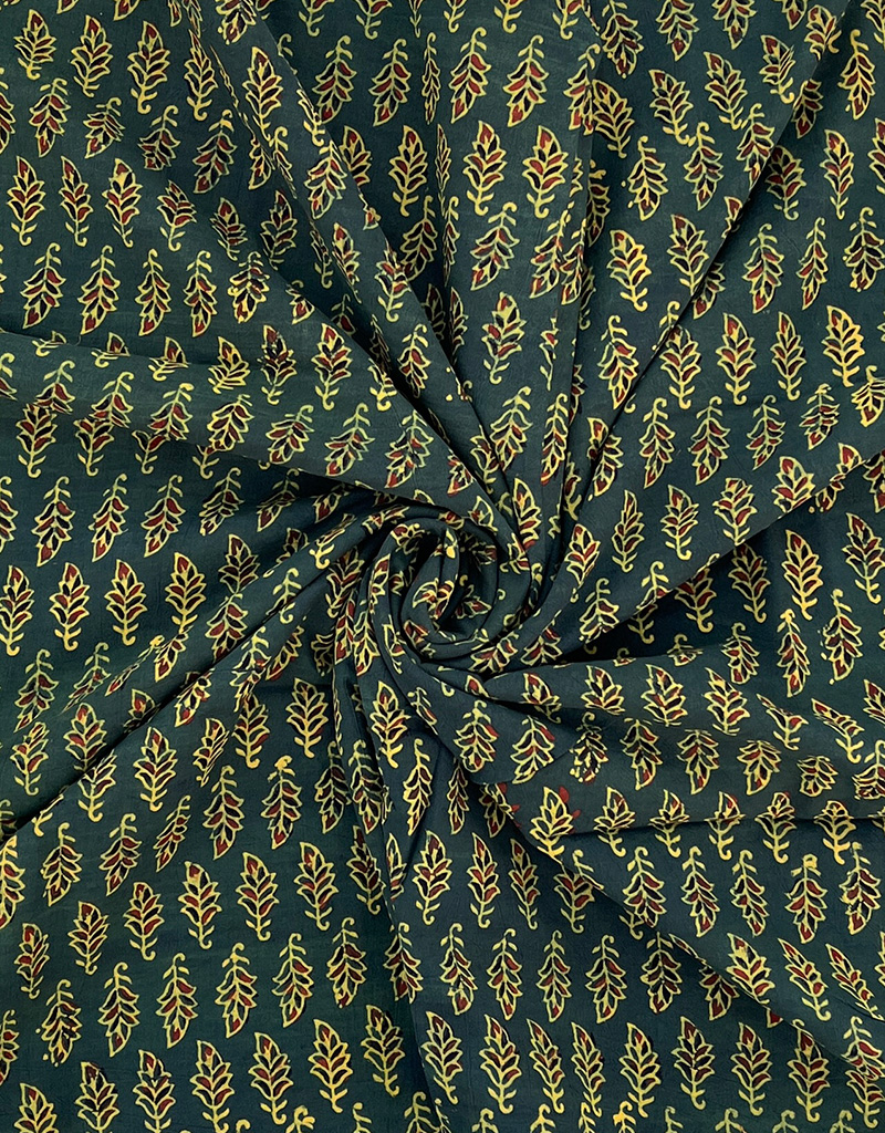 Ajrakh Hand Block Print Leaf Pattern Design Cotton Fabric – Green