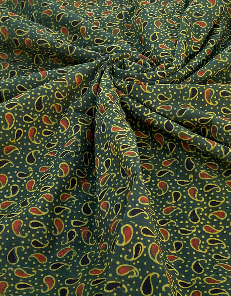 Ajrakh Hand Block Print Small Mango Design Cotton Fabric – Green