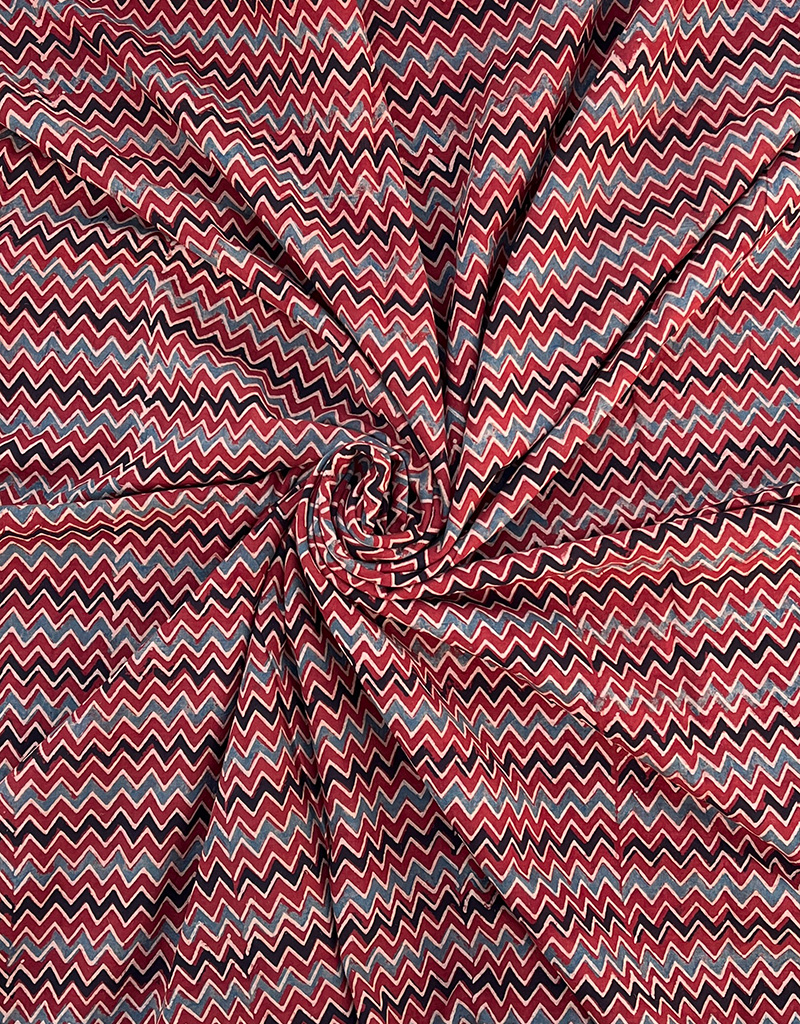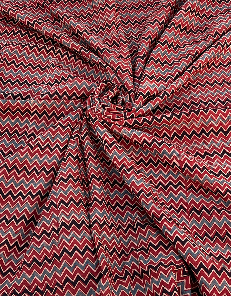 Ajrakh Hand Block Zig Zag Print Cotton Fabric – Red