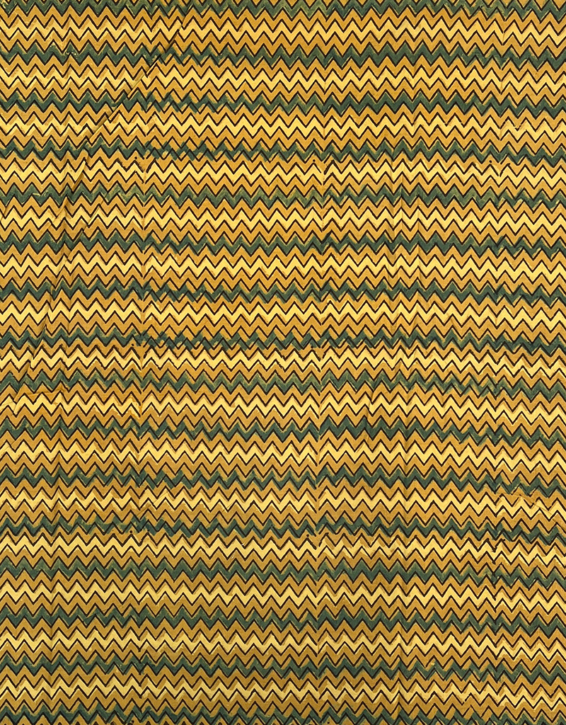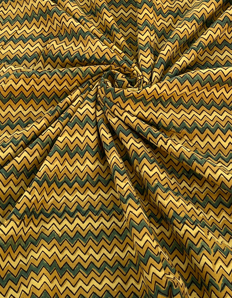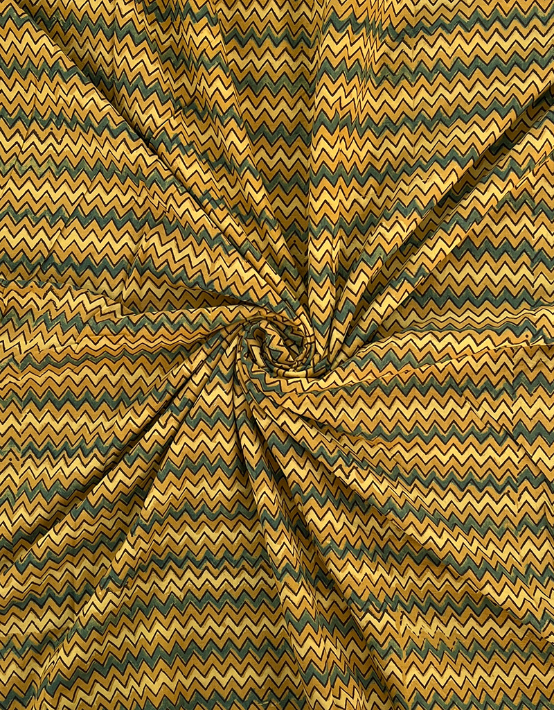 Ajrakh Hand Block Zig Zag Print Cotton Fabric – Yellow