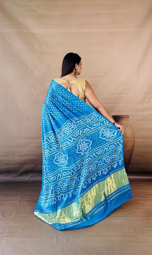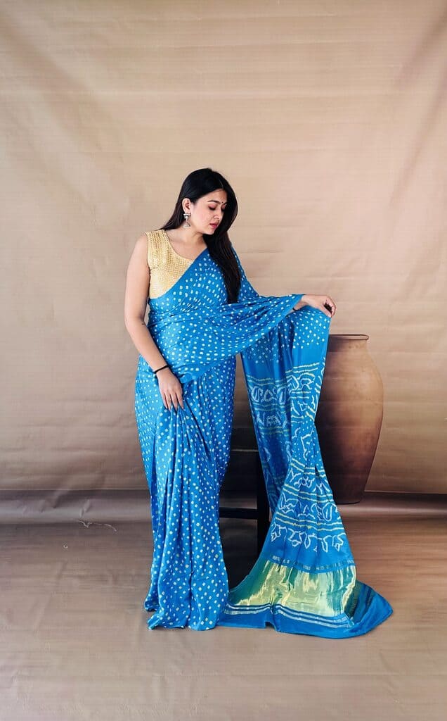 Cerulean Blue “Sky color” & Gold Bandhani Saree