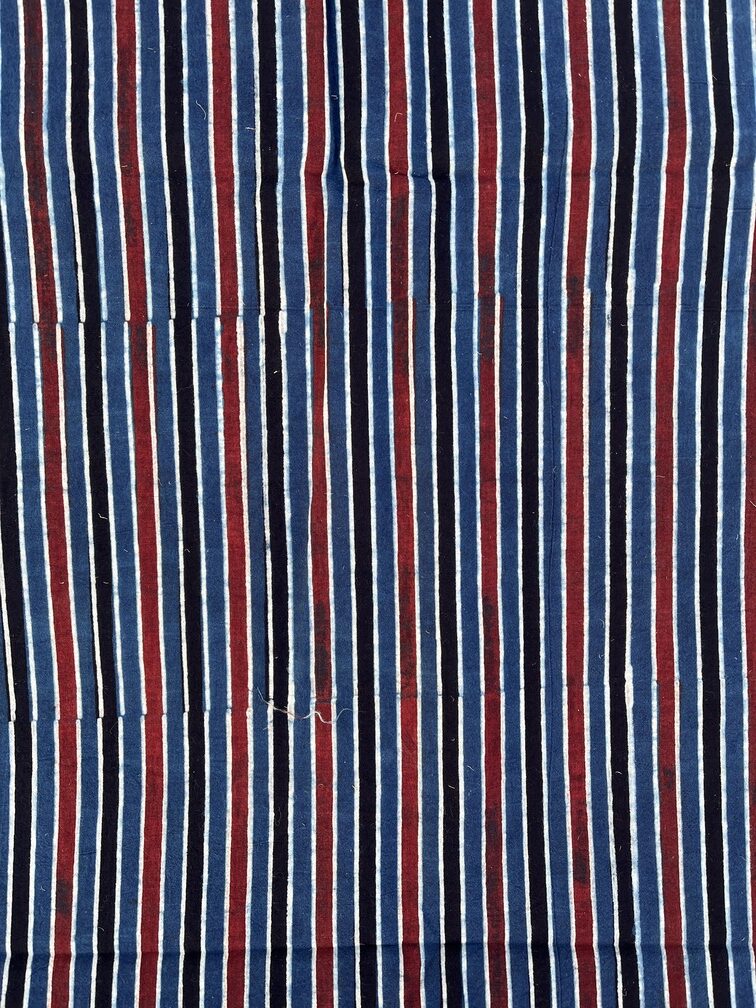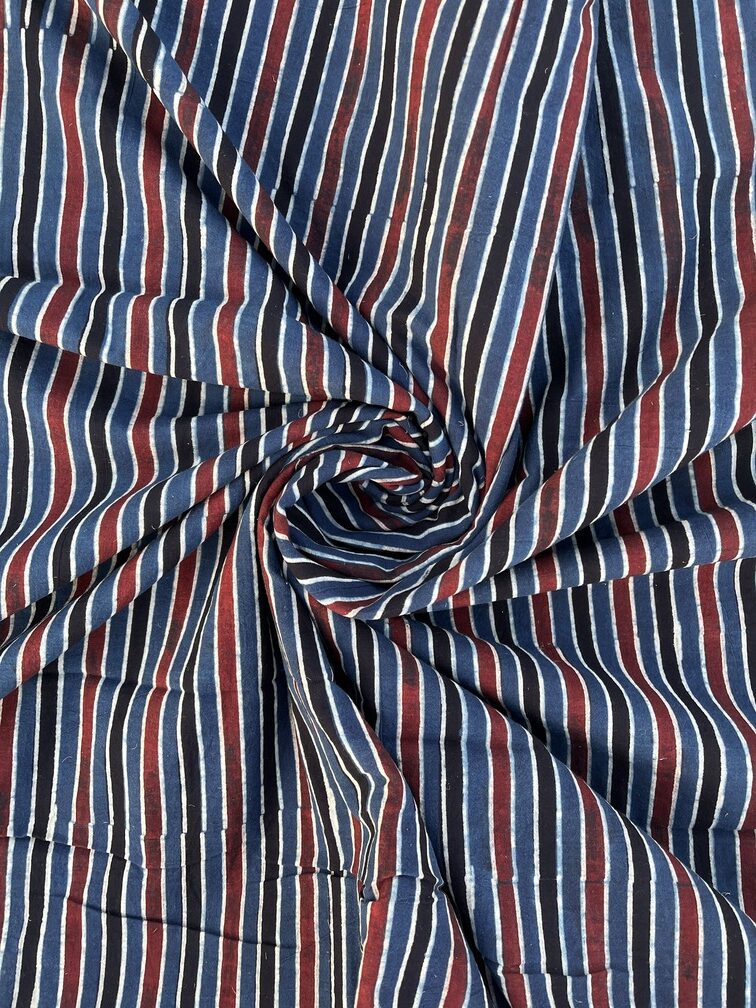 Deep Sea Linear Ajrakh Hand Block Cotton Fabric